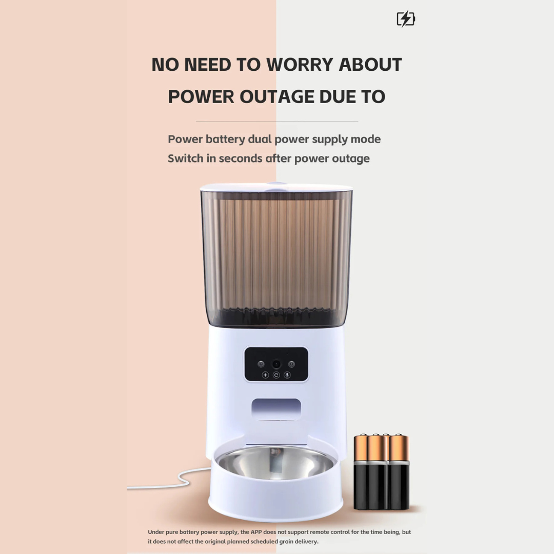 The Vision feeder supports both AC power and backup batteries (3x D-cell, not included). Feeding schedules continue even without WiFi or electricity.