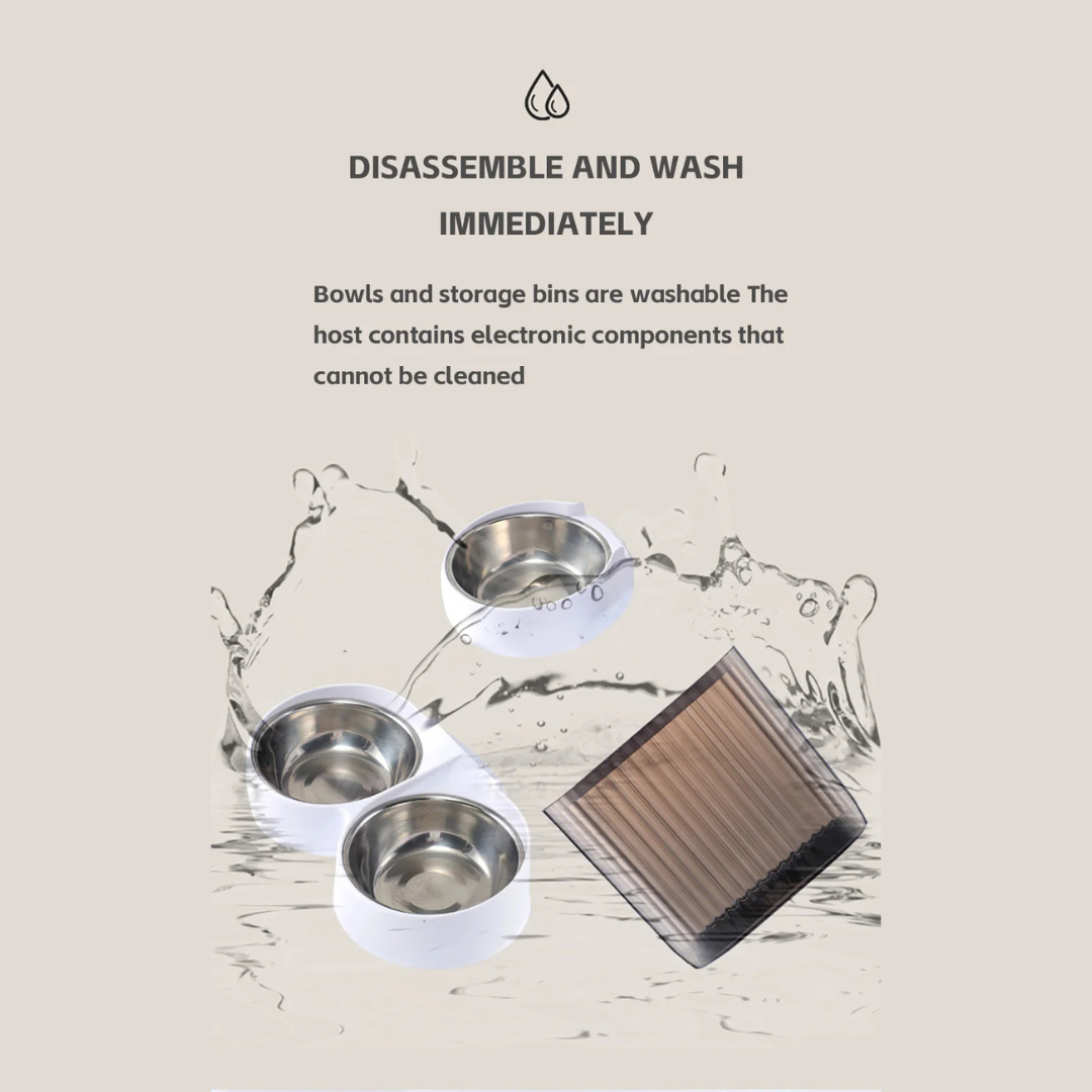 Detachable stainless steel bowl and parts make cleaning effortless. A quick rinse or wipe keeps your pet’s feeder fresh and safe, reducing the risk of bacteria or mold build-up.